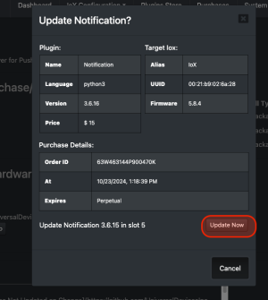 From the Available purchase/install options select Update. Note that in the image below the "Standard" version with a "Perpetual" license is installed in Slot 5. To update the plugin to the same version select update. If you have not purchased the Standard version you can update any other version.